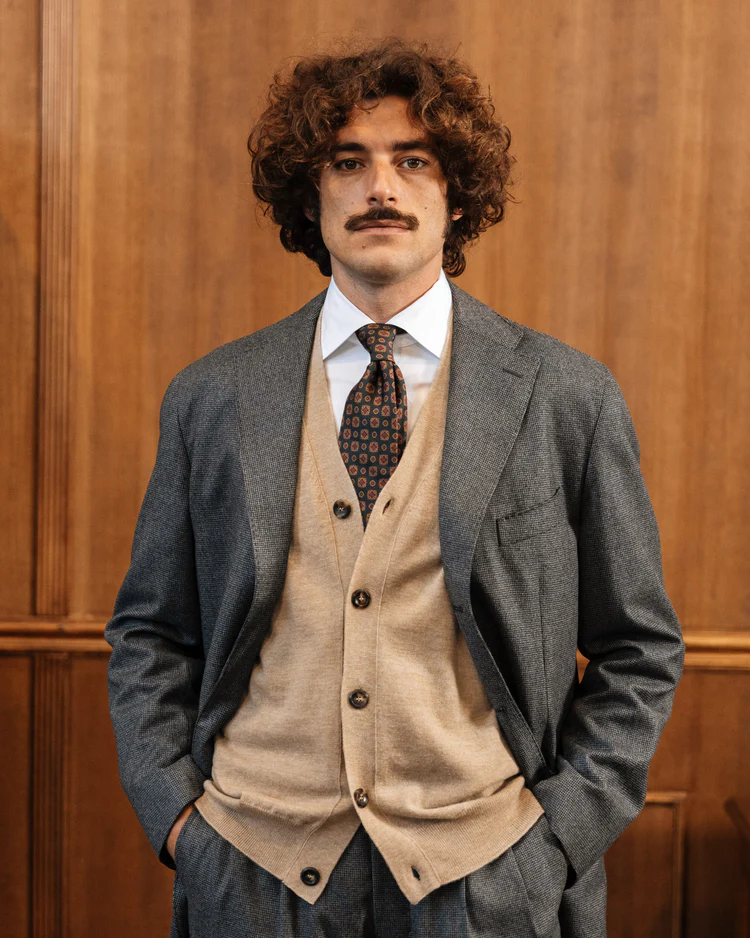 - Designer’s Notes: This sweater vest is a practical piece, easy to style. Wear it with a t-shirt or a shirt and jeans: now you’re ready.