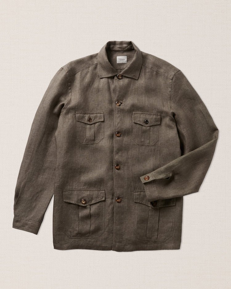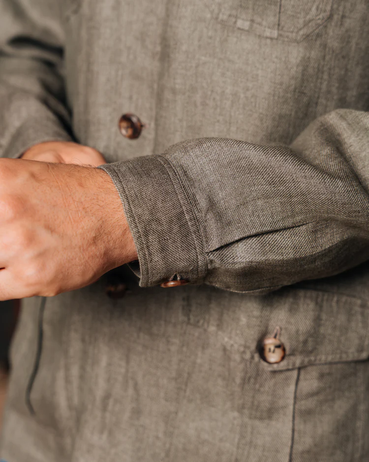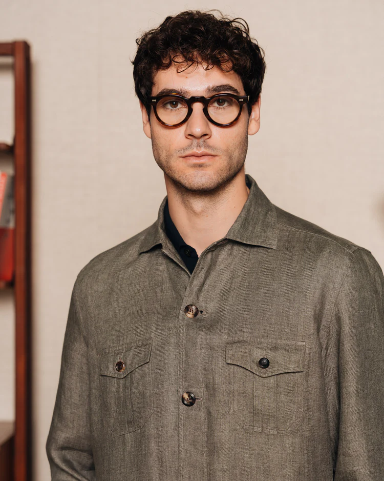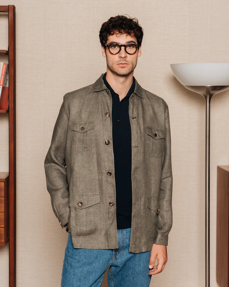 - Designer’s Notes: This model is reminiscent of safari shirts. Due to its weight you can think of it like an overshirt, and wear it with jeans and a t-shirt, or with chinos and something light, like a polo or a button-down.